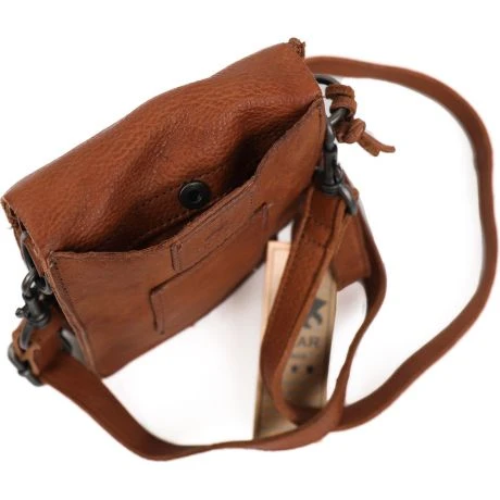 Mobile Bag uit de Anniek serie van Bear Design. Bear Design tassen en accessoires worden met de hand gemaakt van plantaardig gelooid rundleder. Door het gebruik van stevig leer krijgen ze een doorleefde uitstraling en karakteristieke look. Het voorvak is vervangend voor je portemonnee. Een intern ritsvak en voldoende ruimte voor briefgeld en/of bonnetjes. Comfortabel in gebruik met smalle, verstelbare schouderriem.
