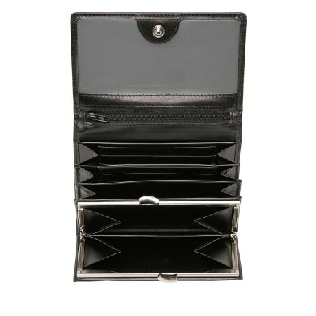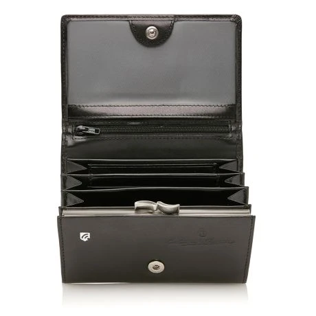 Zeer handzame portemonnee met overslag, beugelsluiting en extra binnenvakje met rits. Bevat daarnaast nog 6 creditcardvakjes. De portemonnee is voorzien van een high-tech folie, dat het uitlezen van de persoonlijke gegevens via de RFID-chip op uw pasjes volledig blokkeert. Uit de Gaucho-serie van Castelijn & Beerens, gemaakt van stierenleer behandeld met een transparante verfstof. Afgewerkt met het sierlijke C&B-logo in een leren ovaaltje.