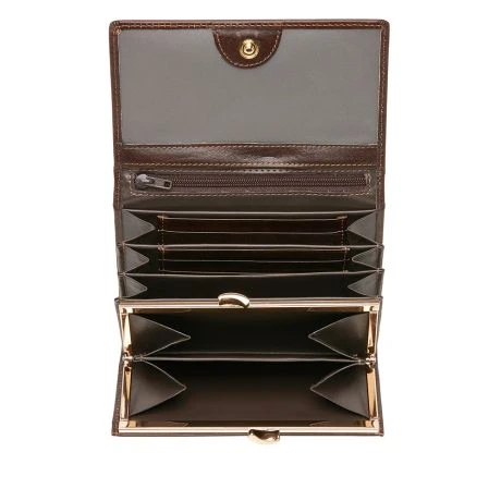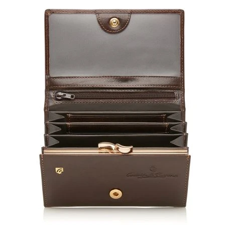 Zeer handzame portemonnee met overslag, beugelsluiting en extra binnenvakje met rits. Bevat daarnaast nog 6 creditcardvakjes. De portemonnee is voorzien van een high-tech folie, dat het uitlezen van de persoonlijke gegevens via de RFID-chip op uw pasjes volledig blokkeert. Uit de Gaucho-serie van Castelijn & Beerens, gemaakt van stierenleer behandeld met een transparante verfstof. Afgewerkt met het sierlijke C&B-logo in een leren ovaaltje.