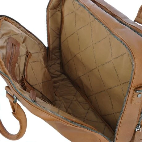 Deze prachtige leren Business Bag van Chesterfield is de perfecte business laptop tas. Dankzij de twee aparte compartimenten met ritssluiting heb je altijd voldoende ruimte voor je laptop en A4 documenten. In het achterste compartiment is de business tas voorzien van een gewatteerd 15.6 inch laptop sleeve. Daarnaast is in dit vak ruimte voor A4 documenten of een map. Ook zit in dit achterste compartimenten nog twee extra rits vakken boven elkaar, deze zijn bedoeld voor computer benodigdheden zoals muis, lader of webcam. Uiteraard zijn deze ook te gebruiken voor andere spullen. In het voorste compartiment zit een rits vak intern en een organisatie paneel voor telefoon, pasjes en mobiel. Al met al heeft de Chesterfield Stef Business laptop bag erg veel ruimte door de twee ruime compartimenten. Door de breedte van de tas staat de tas ook stevig op een bureau of op de grond. Op de achterzijde van de tas zit een smart sleeve om de tas over de trekstang van een koffer te kunnen bevestigen indien je op reis bent en verticaal aan de zijkant nog een rits vak voor documenten tijdens reizen. De tas is voorzien twee stevige handvatten en van een mooie ruime schouderriem zodat je hem ook over je schouder kunt dragen.