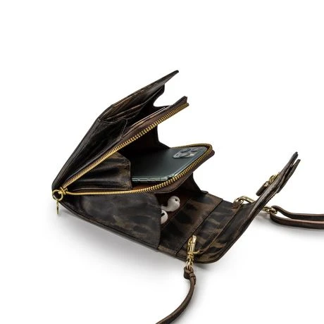 Stijlvol en praktisch telefoontasje van MŌSZ. De tas biedt niet alleen ruimte aan je mobiele telefoon (in alle maten) maar heeft ook 10 kaarthouders met RFID bescherming, wat het skimmen van je pasjes onmogelijk maakt. Daarnaast is er ruimte voor brief- en kleingeld, een speciaal opbergvakje voor je oordopjes en dan nog is er genoeg ruimte voor je dagelijkse ‘kleinere’ spulletjes. Het telefoontasje is op twee verschillende manieren te dragen. Crossbody dankzij de verstelbare en afneembare schouderriem en als handtas dankzij de korte schakelketting.