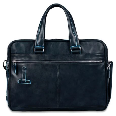 Luxe lederen laptoptas uit de Blue Square serie van Piquadro. De collectie Blue Square is gemaakt van gelooid kalfsleer. Deze traditionele looimethode behoudt de schoonheid van het leer door de jaren heen. De ruwe snijranden die met de hand beschilderd zijn, tonen het businesskarakter van de collectie en zijn een zeer herkenbaar onderscheidend element. Deze laptoptas bevat twee ruime compartimenten en heeft ruimte voor een 15″ laptop en een 10″ iPad/Tablet, bovendien is de tas uitbreidbaar voor extra opbergruimte. Verder bevat de tas een groot voorvak, twee kleine georganiseerde voorvakjes en een externe drinkfleshouder.
