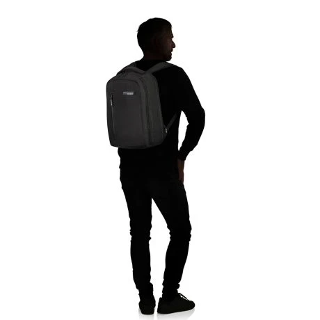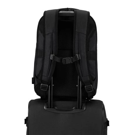 De rugtas is voorzien van ergonomische schouderbanden en een in hoogte verstelbare borstriem aan de voorzijde. Het interieur is van gerecycled PET en is ruim in inhoud. Het laptopvak en tabletvak is apart te bereiken met een ritsvak. Aan de achterzijde zit een smart sleeve zodat je de rugzak over een trekstang van een koffer kunt zetten tijdens reizen.