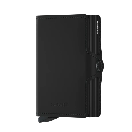 De Secrid Twinwallet bestaat uit twee cardprotectors in een leren hoes met druksluiting. Met de Twinwallet neemt u acht tot twaalf kaarten beveiligd mee. Het binnenwerk biedt daarnaast ruimte voor extra kaarten, papiergeld, bonnetjes, visitekaartjes en muntgeld. De Twinwallet is met haar 70 mm breedte en 25 mm dikte minstens de helft compacter dan een traditionele portemonnee met vergelijkbare inhoud. De twee stuks aluminium cardprotectors in de Twinwallet beschermen uw belangrijkste passen optimaal, zowel tegen buigen, slijten en breken als tegen ongewenst uitlezen van RFID-kaarten (zoals de OV-chipkaart, ID-kaart, de nieuwste creditcards en bedrijfspasjes). De Secrid Twinwallet is geschikt voor 8 tot 12 vlakke kaarten. Dankzij het unieke ontwerp schuiven de kaarten trapsgewijs naar buiten voor een eenvoudige selectie. De Secrid Twinwallet wordt geleverd in een mooie verpakking en daardoor ook zeer geschikt als uniek cadeau.