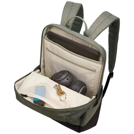 Laptoprugtas uit de Lithos serie van Thule. De rugzak is prettig te dragen door middel van het gevoerde rugpaneel en de gewatteerde schouderbanden. Het ongebruikte deel van de schouderbanden zijn eenvoudig weg te werken dankzij het oprolsysteem. Het hoofdcompartiment sluit door middel van een rits en beschikt over een mesh ritsvak, een 15.6” laptopvak en een tabletvak. Daarnaast is het voorvak voorzien van een organisatiepaneel waar de kleinste eigendommen geordend in op te bergen zijn. Aan de zijkanten is de rugzak voorzien van insteekvakken waar een fles drinken of een krant snel bij de hand te houden zijn.